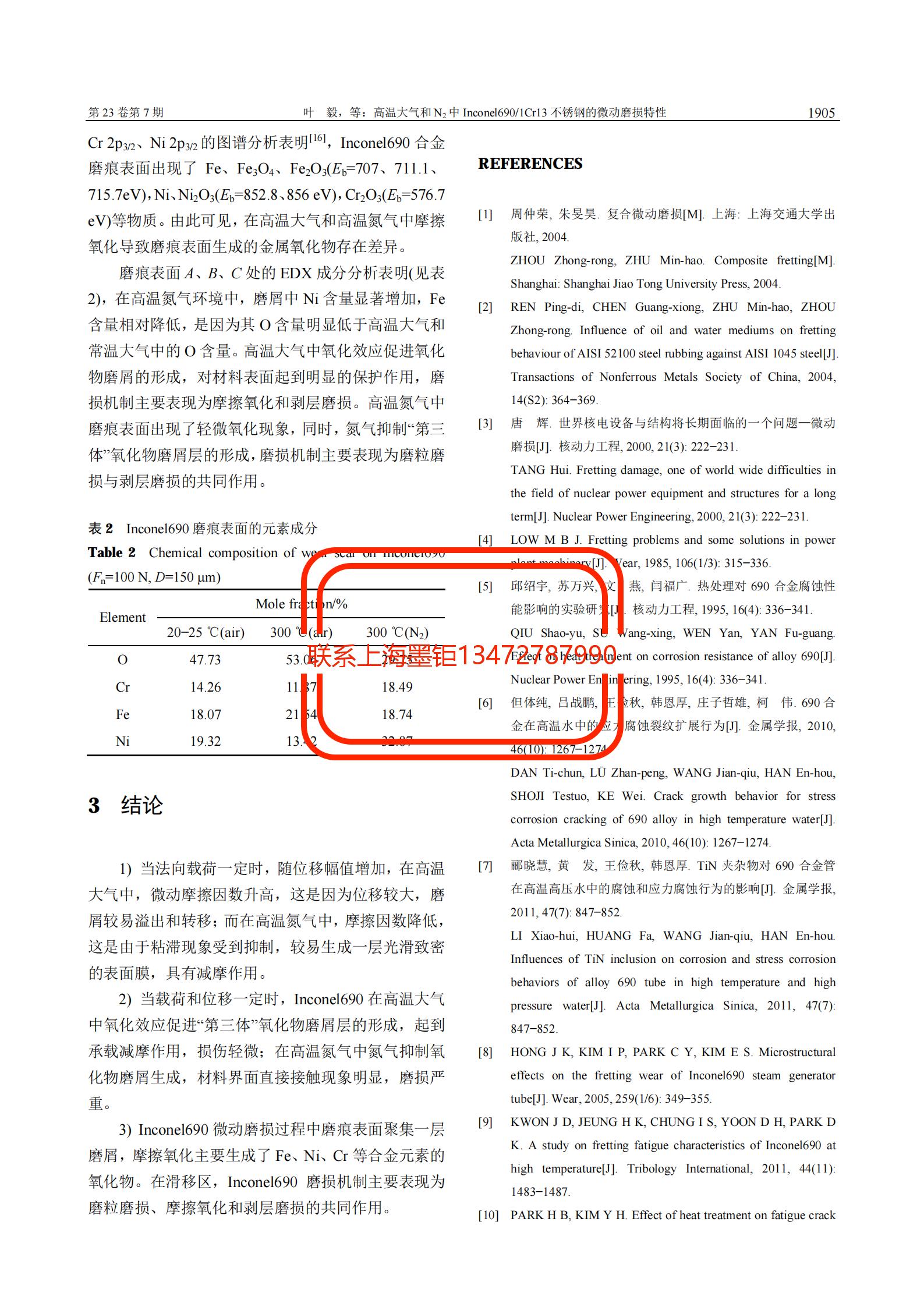 技術文章 高溫大氣和N_2中Inconel690_1Cr13不銹鋼的微動磨損特性 更新時間 2021-07-12 10:22:54 閱讀 765 上一篇:Inconel600鎳基合金熱軋板表面起皮缺陷原因分析 下一篇:第一降溫器Inconel600_Q345鎳基復合鋼板的焊接